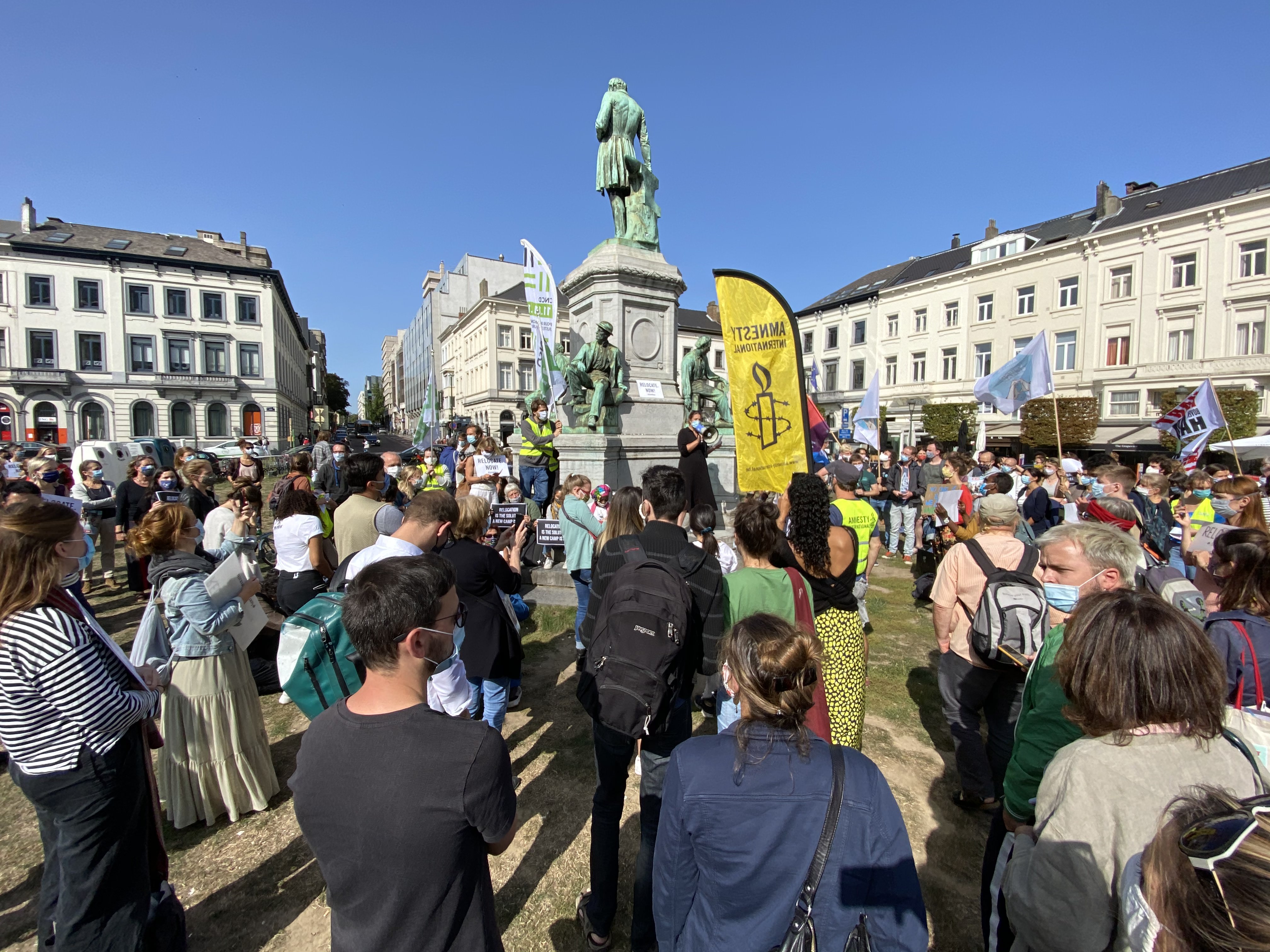 Samen met Vluchtelingenwerk, 11.11.11., Amnesty, Ciré, #Gent Zonder Grenzen, Platform Kinderen op de Vlucht, Caritas International, Amitié Sans Frontières/Vriendschap Zonder Grenzen, … protesteerden we op 17 september voor de deuren van het Europees parlement, met 1 duidelijke eis: Relocate. Now!