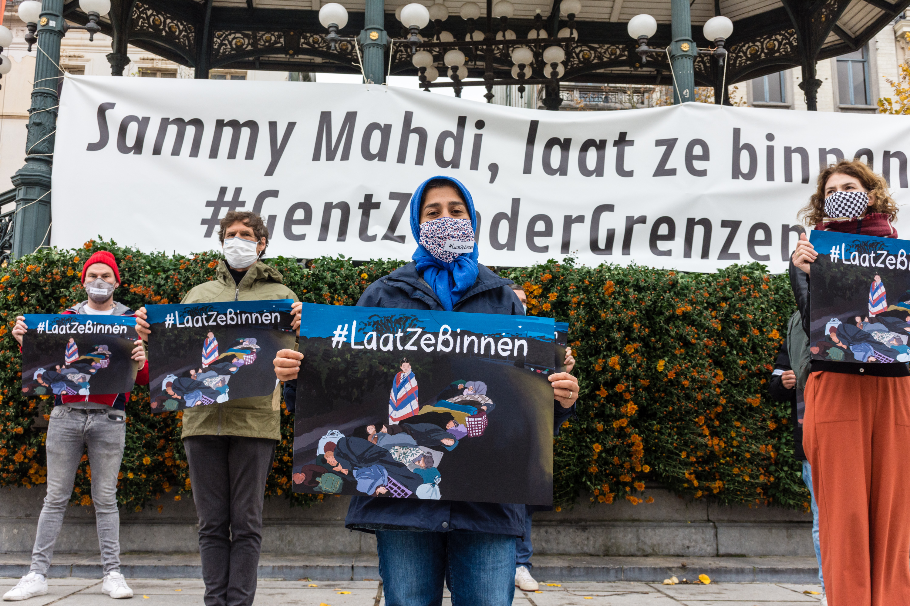 Op 24 oktober voerde #GentZonderGrenzen samen met Hart boven Hard actie om aandacht te vestigen op de zorgwekkende toestanden in de Griekse vluchtelingenkampen. Onder de hashtag #LaatZeBinnen richtten we ons daarbij tot staatssecretaris voor asiel en migratie, Sammy Mahdi, met de vraag om de mensen die daar vastzitten een thuis te bieden in België en andere Europese landen .