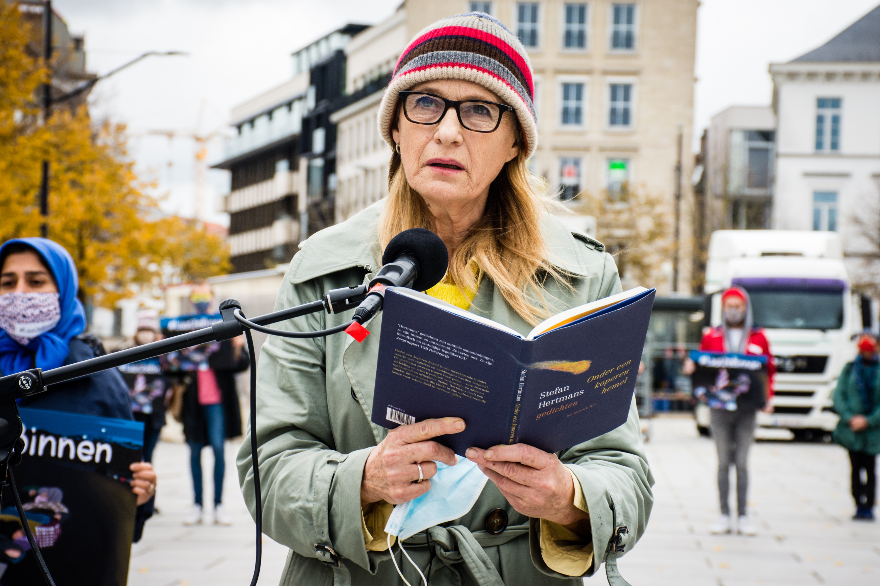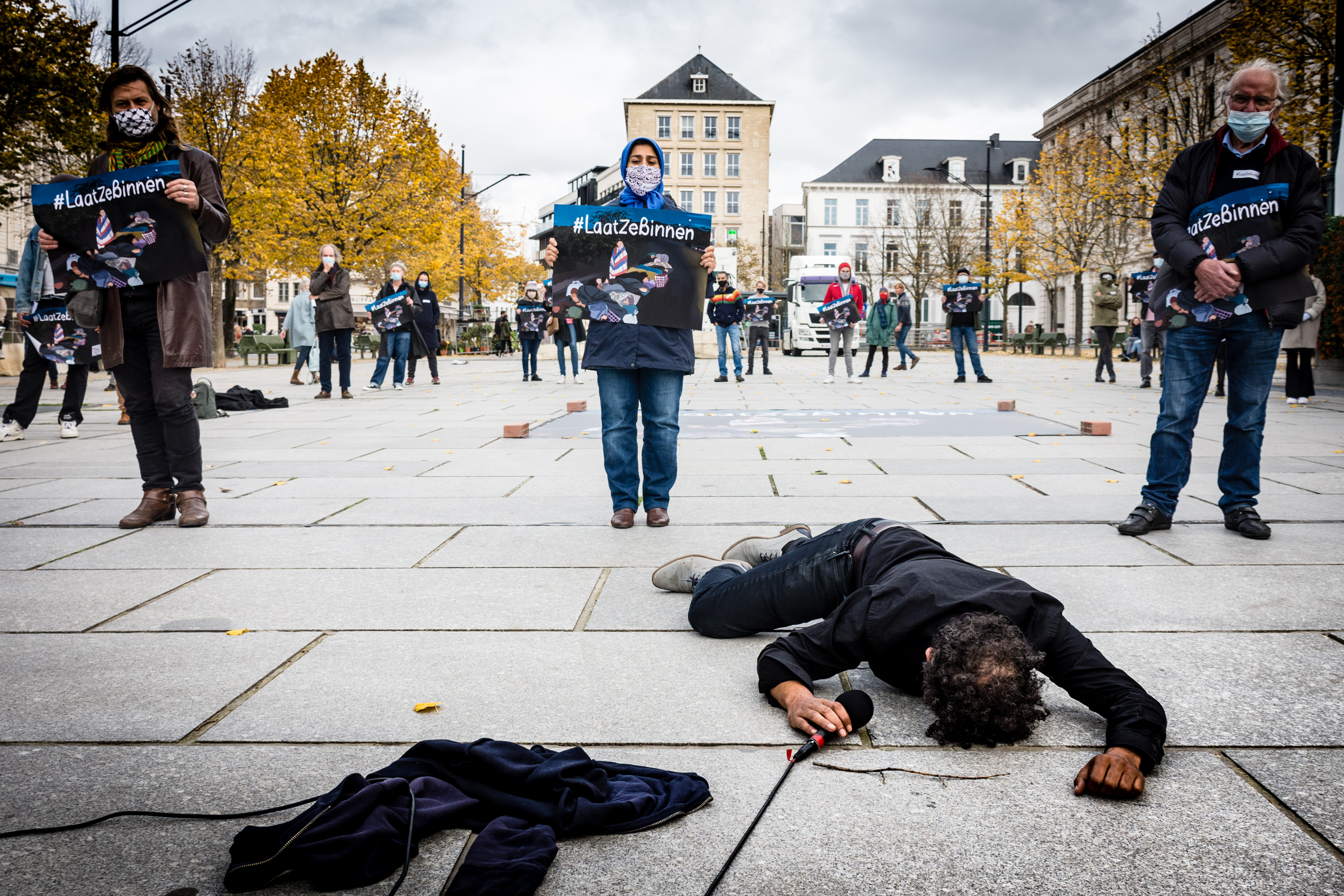 “Op de Kouter in Gent stond zaterdag 24 oktober tijdelijk een huis. Een symbolisch huis weliswaar, gevormd door mensen. Met de slogan “Laat ze binnen” richtten de actievoerders zich tot staatssecretaris voor Asiel en Migratie Sammy Mahdi, om meer mensen op de vlucht onderdak en hulp te bieden. De toestand in de Griekse vluchtelingenkampen is slecht, en daar kan België wat aan doen, vinden ze.”
